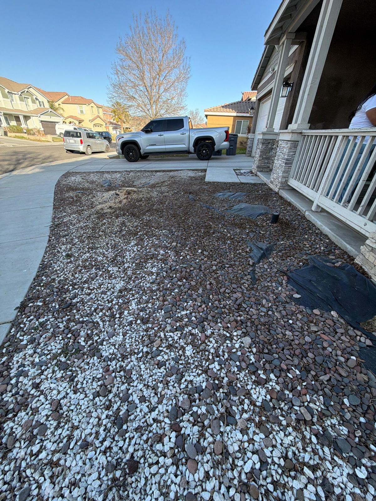 This proposal includes the removal of existing gravel, soil, weed fabric, and surface debris in the front yard, followed by professional preparation and installation of artificial grass over approximately 654 square feet. Work includes full vegetation removal, grading, subgrade conditioning, and installation of a properly compacted base designed for long-term performance.